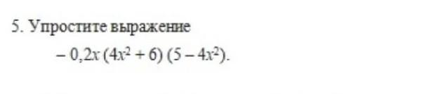 -0,2x\cdot( 4x^2+6)\cdot (5-4x^2)=\\\\=-0,2x\cdot (4x^2\cdot 5+6\cdot 5+4x^2\cdot (-4x^2)+6\cdot (-4x^2))=\\\\=-0,2x\cdot (20x^2+30-16x^4-24x^2)=\\\\=-0,2x\cdot (30-16x^4-4x^2)=\\\\=-0,2x\cdot 30-0,2x\cdot (-16x^4)-0,2x\cdot (-4x^2)=\\\\=-6x+3,2x^5+0,8x^3