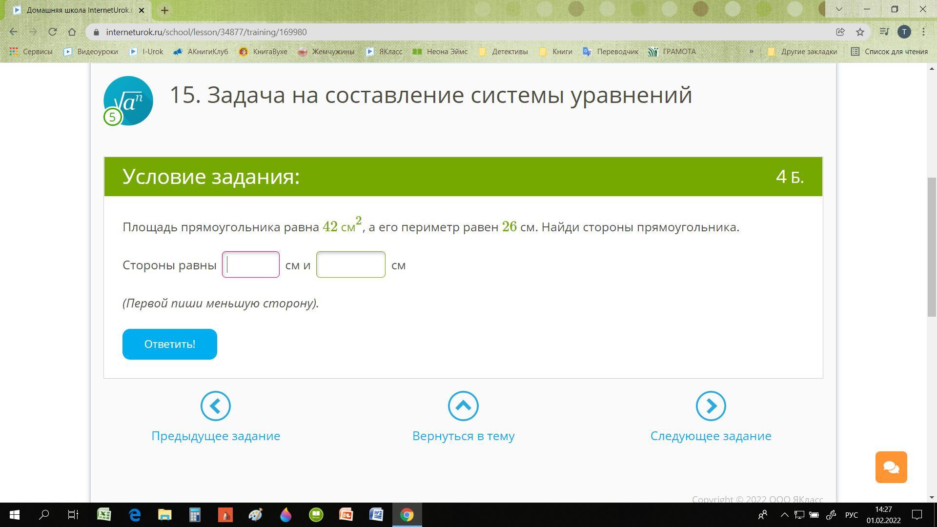стороны равны 7см и 6см