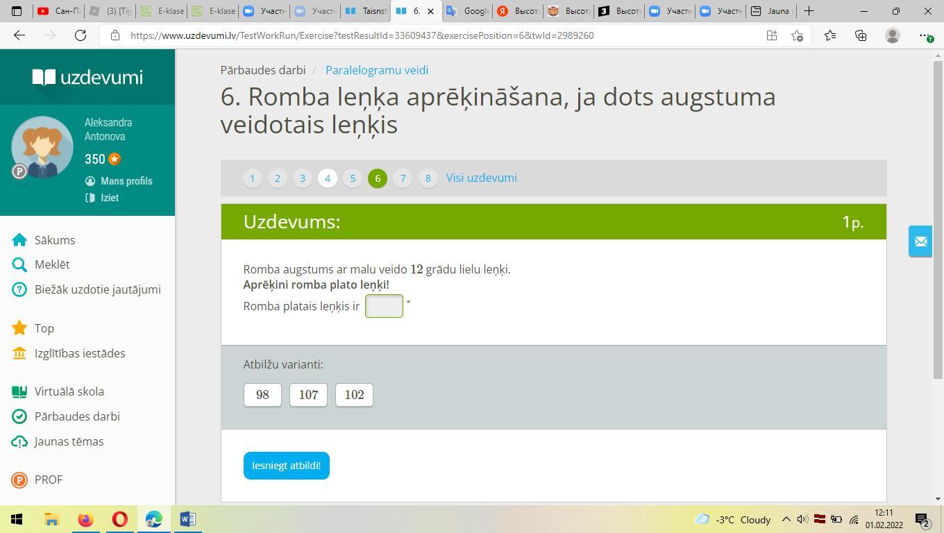 Высота ромба с ребром образует угол 12 градусов.