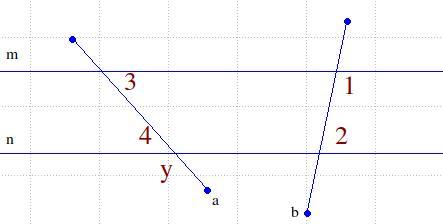 ∡1 и ∡2 односторонние и показывают что m и n параллельны.