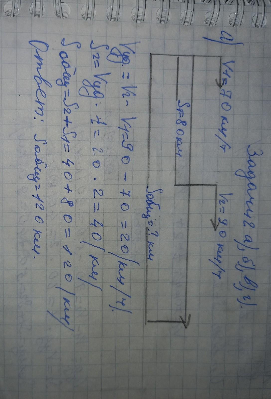 уд. уд 2 ТВОРЧЕСКАЯ РАБОТА 2. Составь задачи по чертежам. a) 6) 70 км/ч 90 км/ч t= 2 ч 60 км/ч 40 км/ч t= ? ч 80 км 200 км S = ? — в) г) 25 км/ч 35 км/ч t= 4ч 70 км/ч t= 2 ч 50 км/ч -50 км 7 км ? км