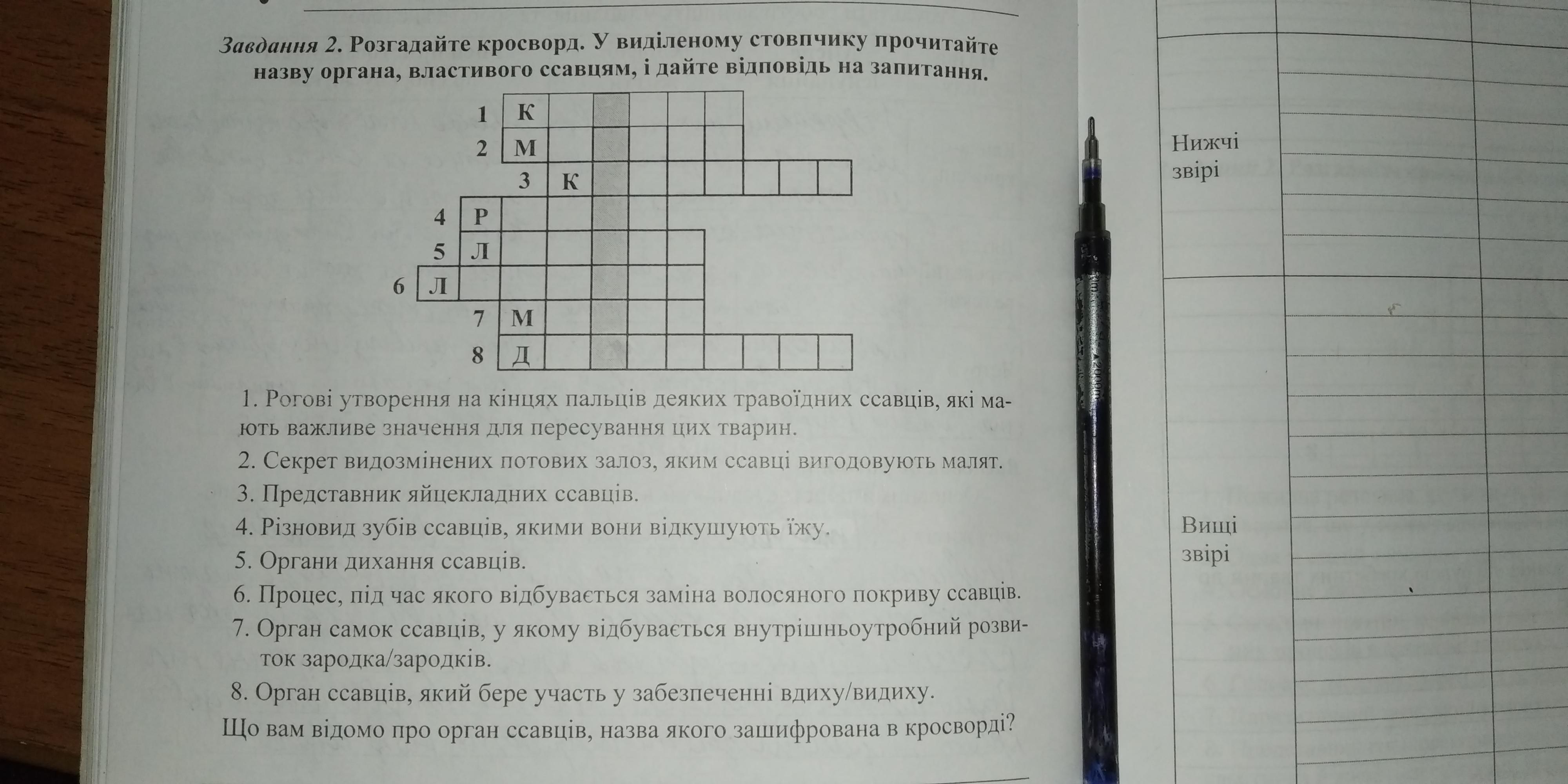 Вибач, я не розумію цей кросворд, не відповідає кількості літер, а відповідь при цьому правильна. Також перше слово це Кіготь, а під слово, яке утворилося в результаті не підходить. Я дивилася багато варіантів, всеодно не правильно.