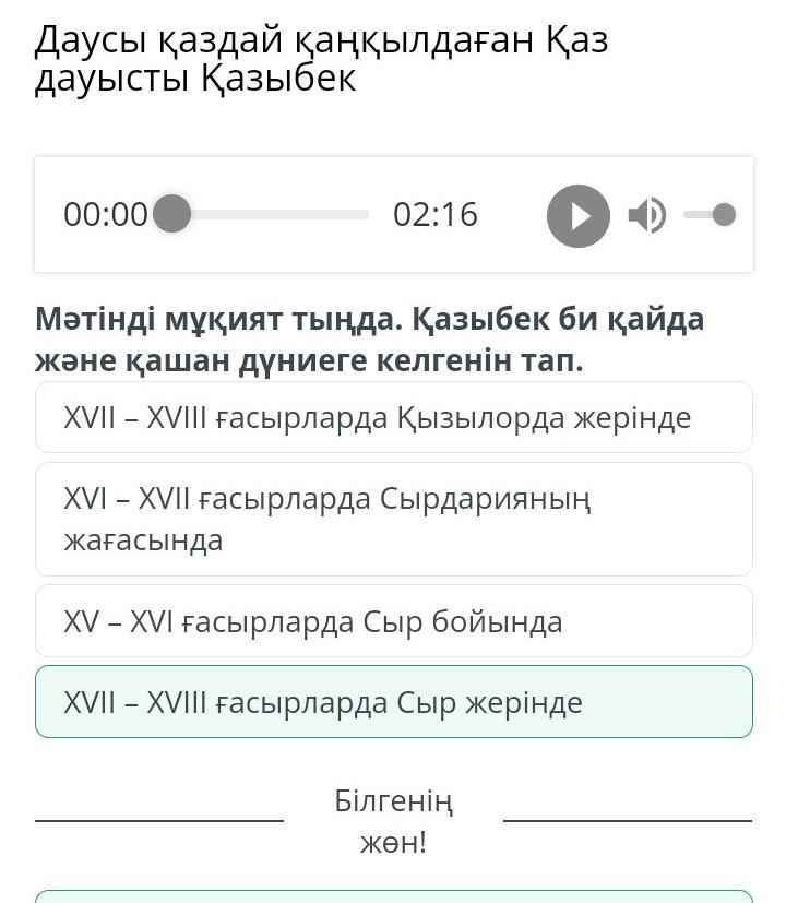 Мәтінді мұқият тыңда. Қазыбек би қайда және қашан дүниеге келгенін тап.