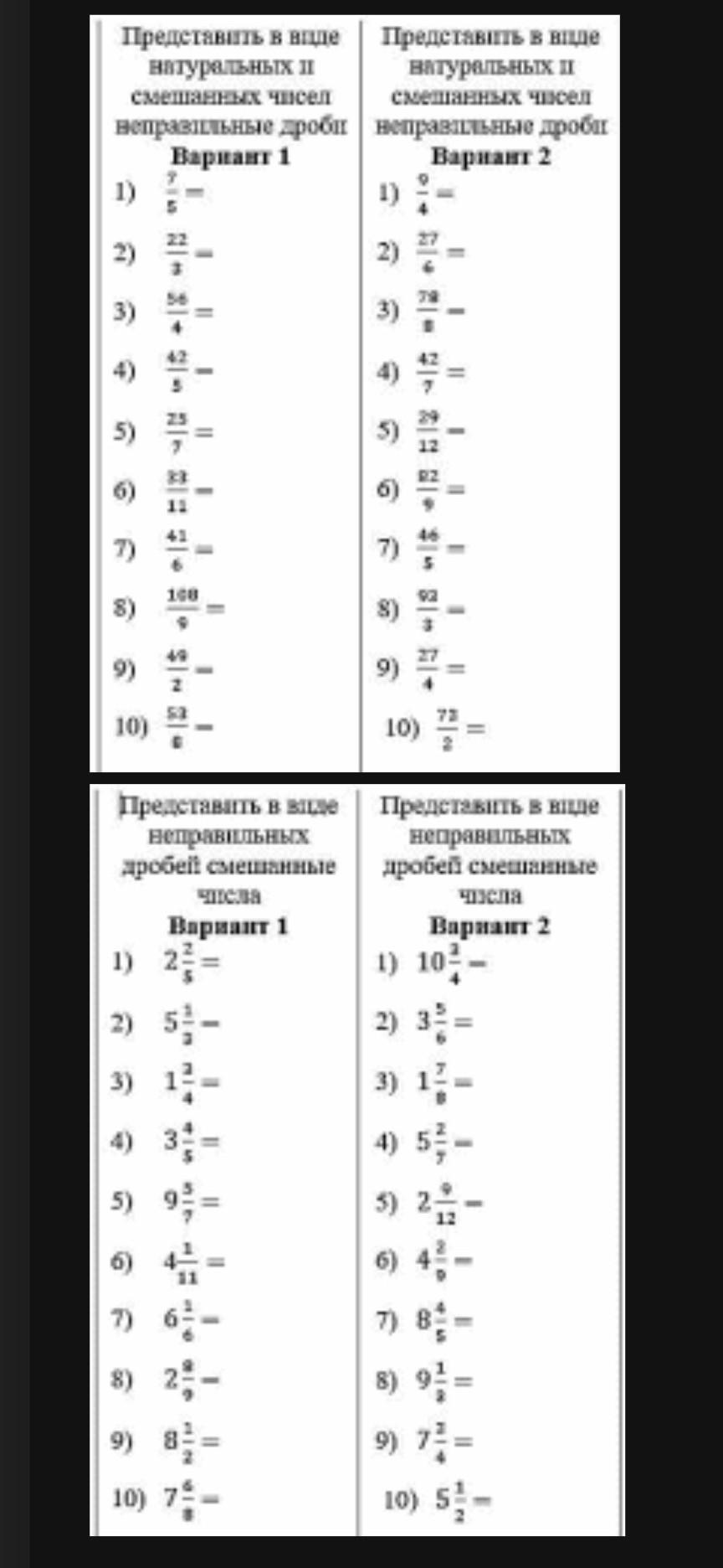 Ответ:1 2/5,7 1/3,14,3 4/7,3,6 5/6,11 6/9,24 1/2,8 5/6,
