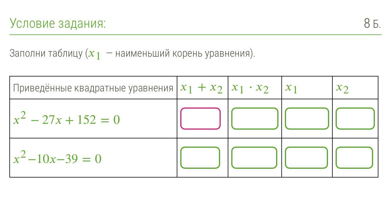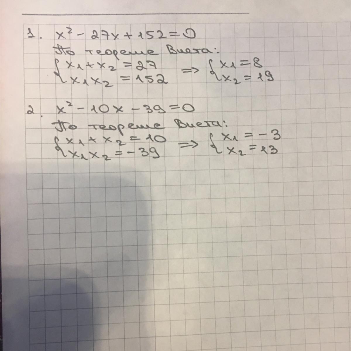 Здесь нам будет нужна Теорема Виета. Она гласит, что произведение корней уравнения ах²+bx+c равно свободному члену "с", а сумма корней равна коэффициенту "b" с противоположным знаком. Значит.
