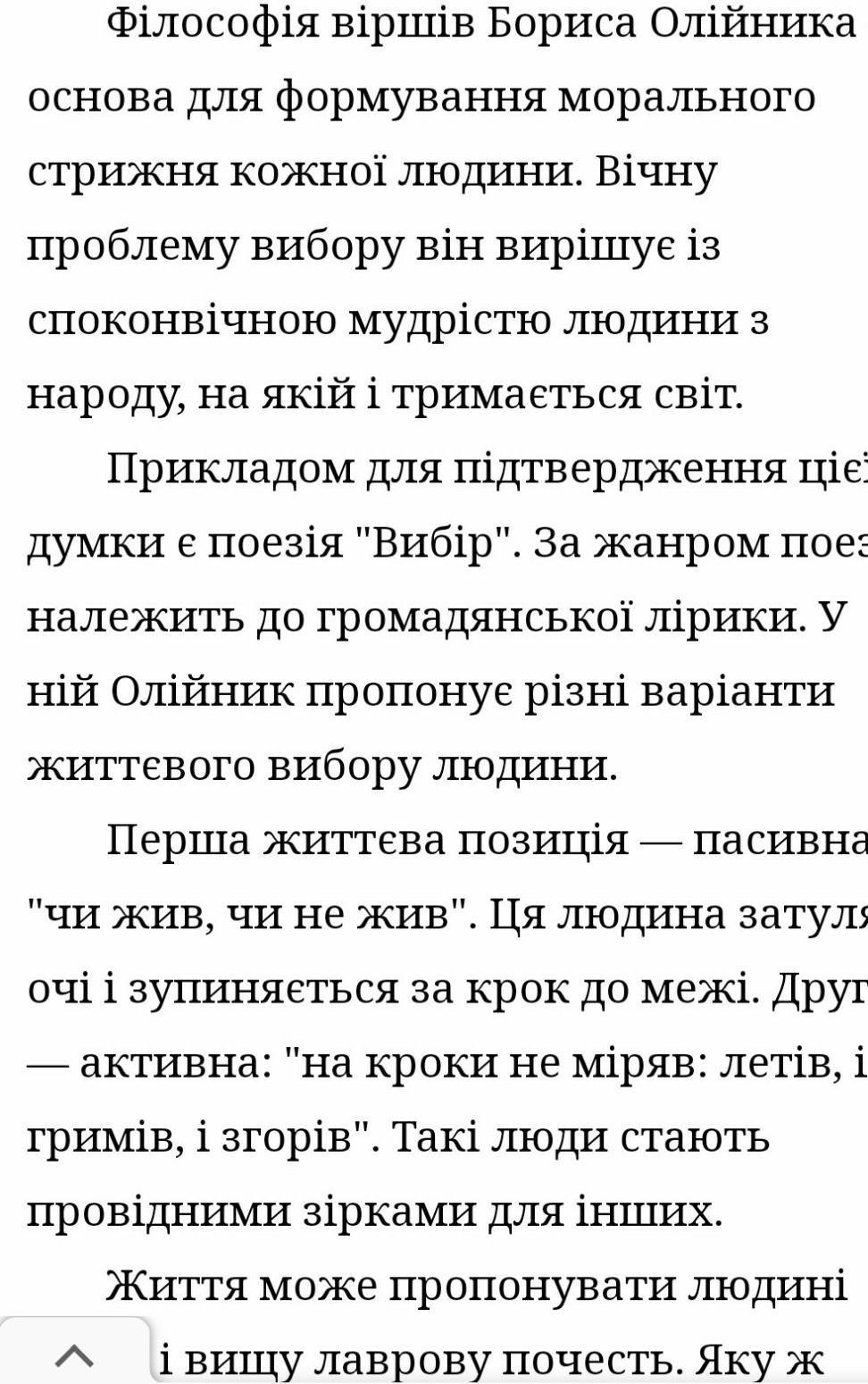 12. Охарактеризуйте, яким чином у творі Б. Олійника «Вибір» вирішується проблема вічного життєвого вибору. Свої спостереження узагальніть.