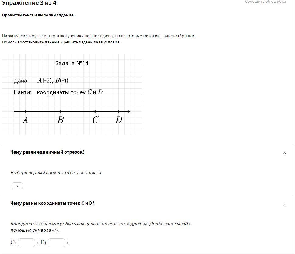 Единичный отрезок-это 6 клеток по твоему рисунку, получается точка С=0, а точка D= 4/6, либо 2/3