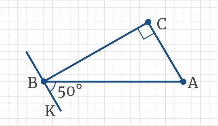 т.к СА параллельна ВК, и является перпендикуляром, и к тому же внешний угол равен 50°, то внутренний угол В будет равен 40° (90°-50°=40°).