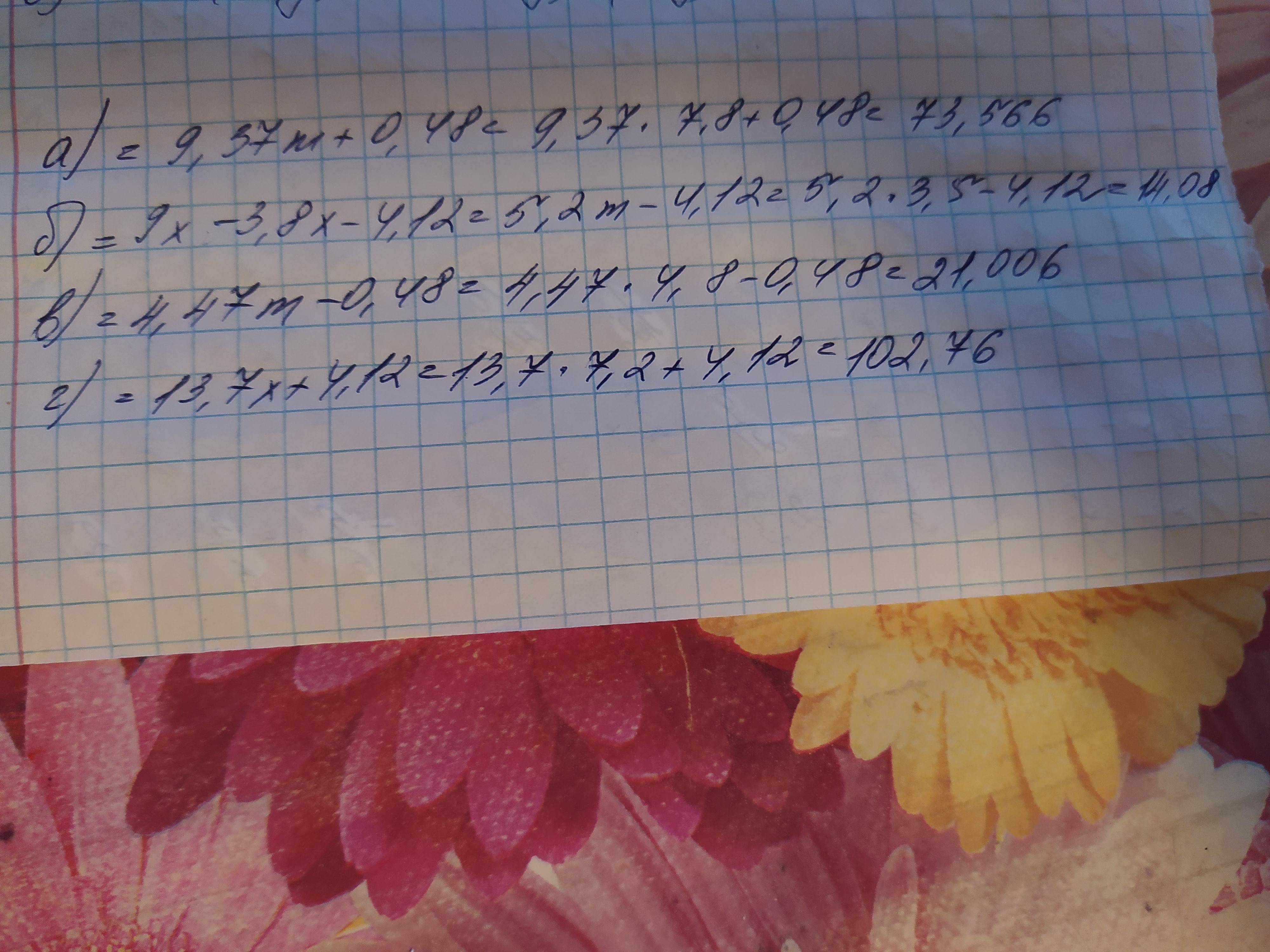 б) 9х – (3,8х + 4,12) при х = 3,5