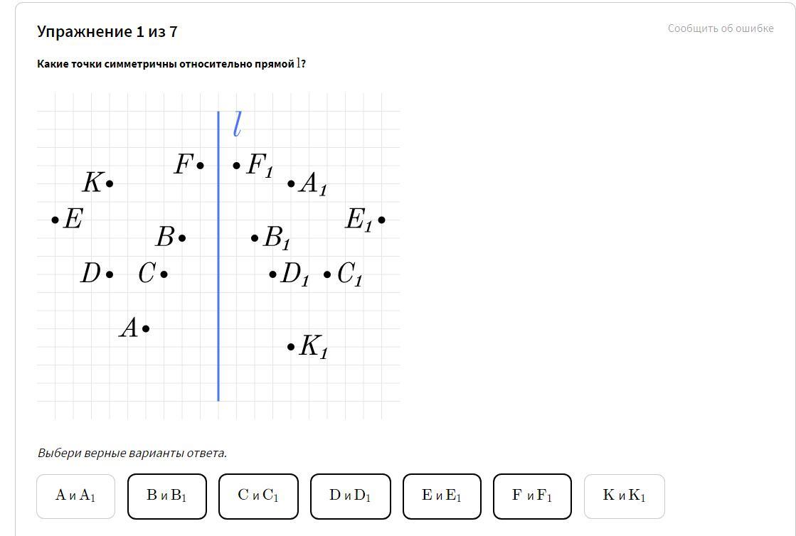 F и F1 , B и B1 , C и D1 , D и C1, E и E1