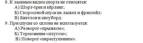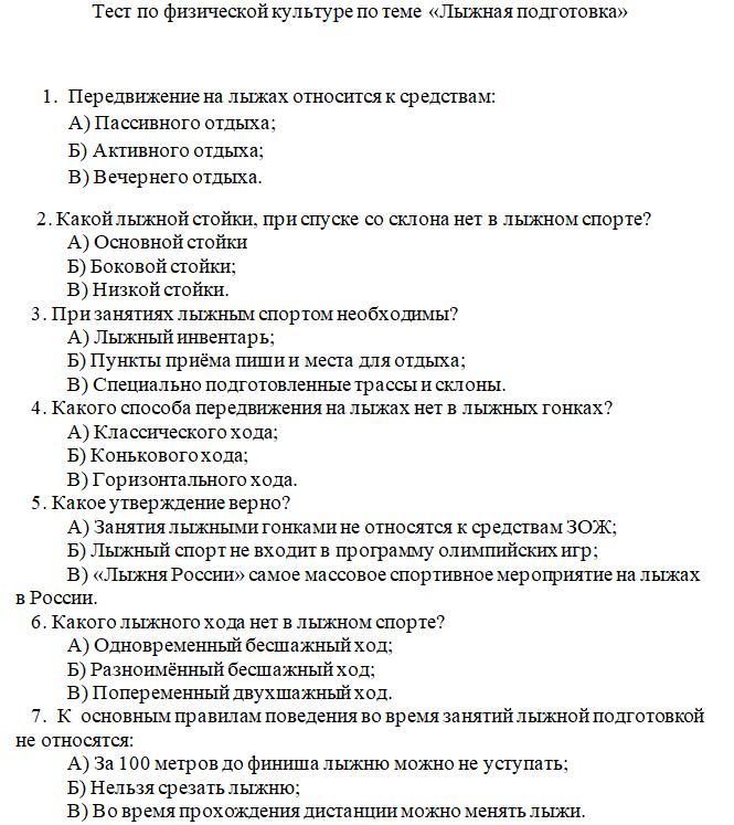 Тест по физической культуре по теме «Лыжная подготовка»