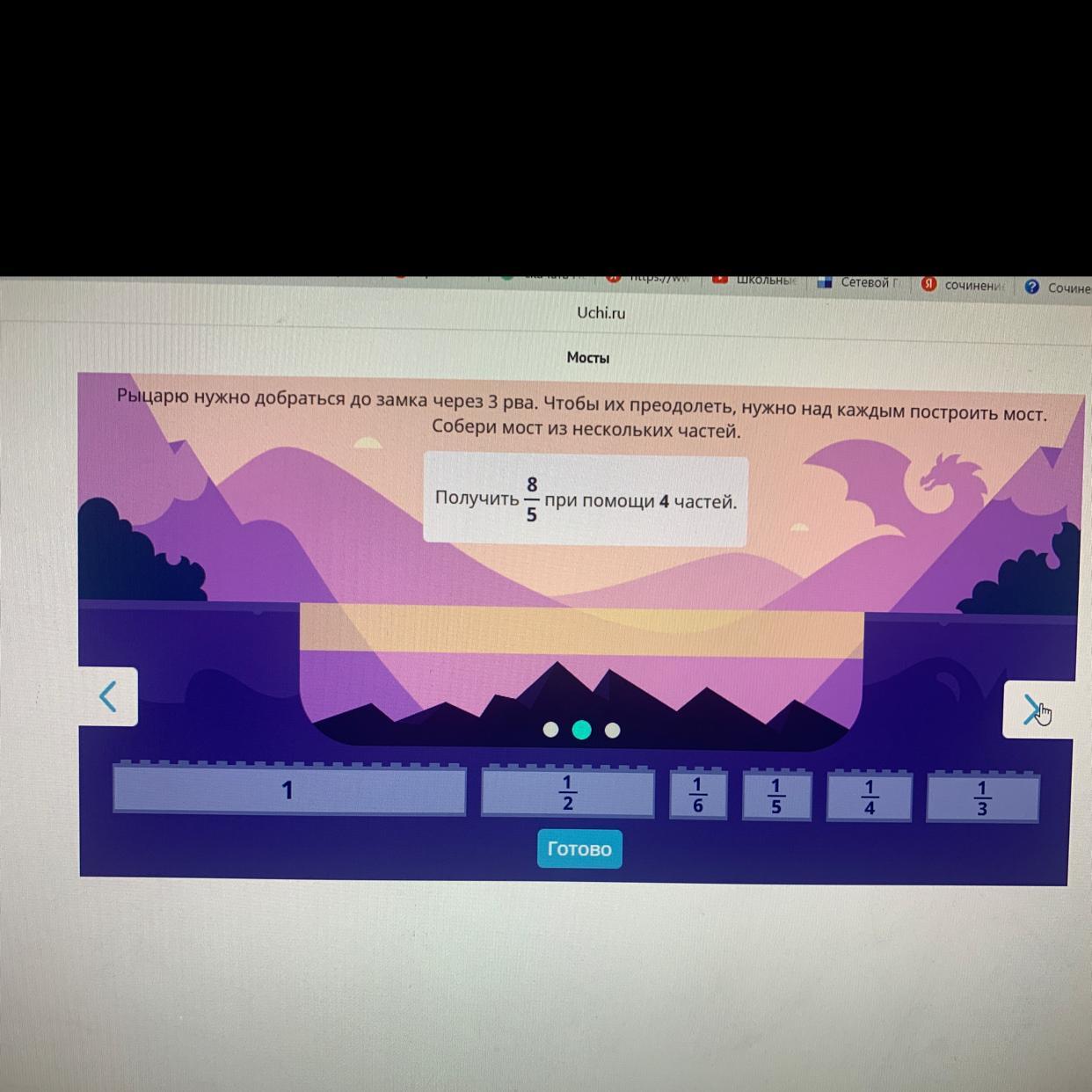 Рыцарю нужно добраться до замка через 3 рва.Чтобы их преодолеть ,нужно над каждым построить мост .Собери мост из нескольких частей.