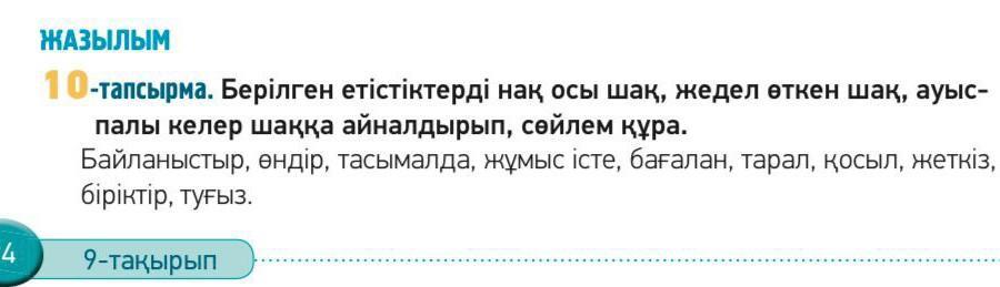 Жедел өткен шақ: байланыстырды, өндірді, тасымалдады, жұмыс істеді, бағаланды, таралды, қосылды, жеткізді, біріктірді, туғызды.