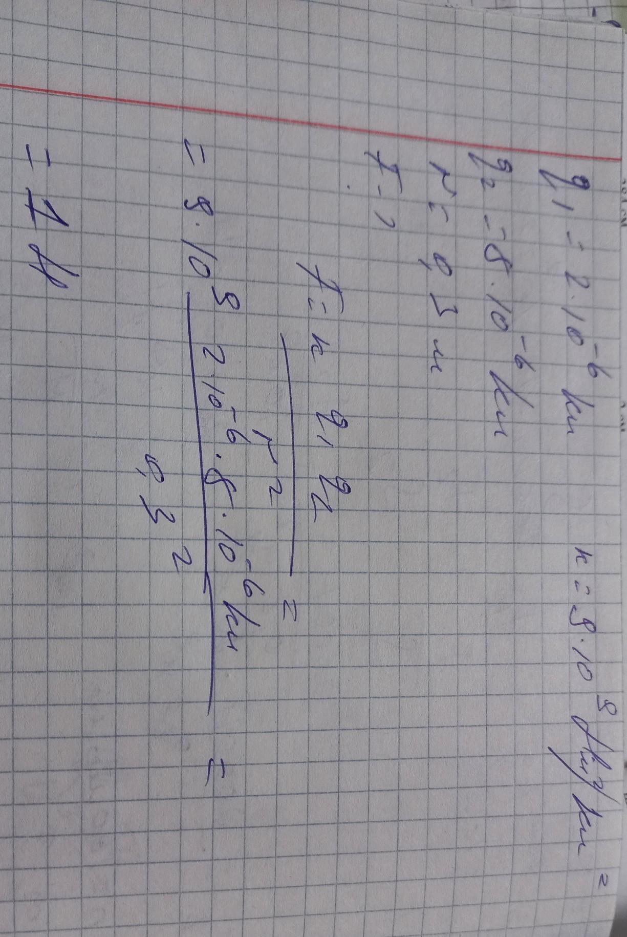 Разве там q1=8*10...? в условии задачи -5