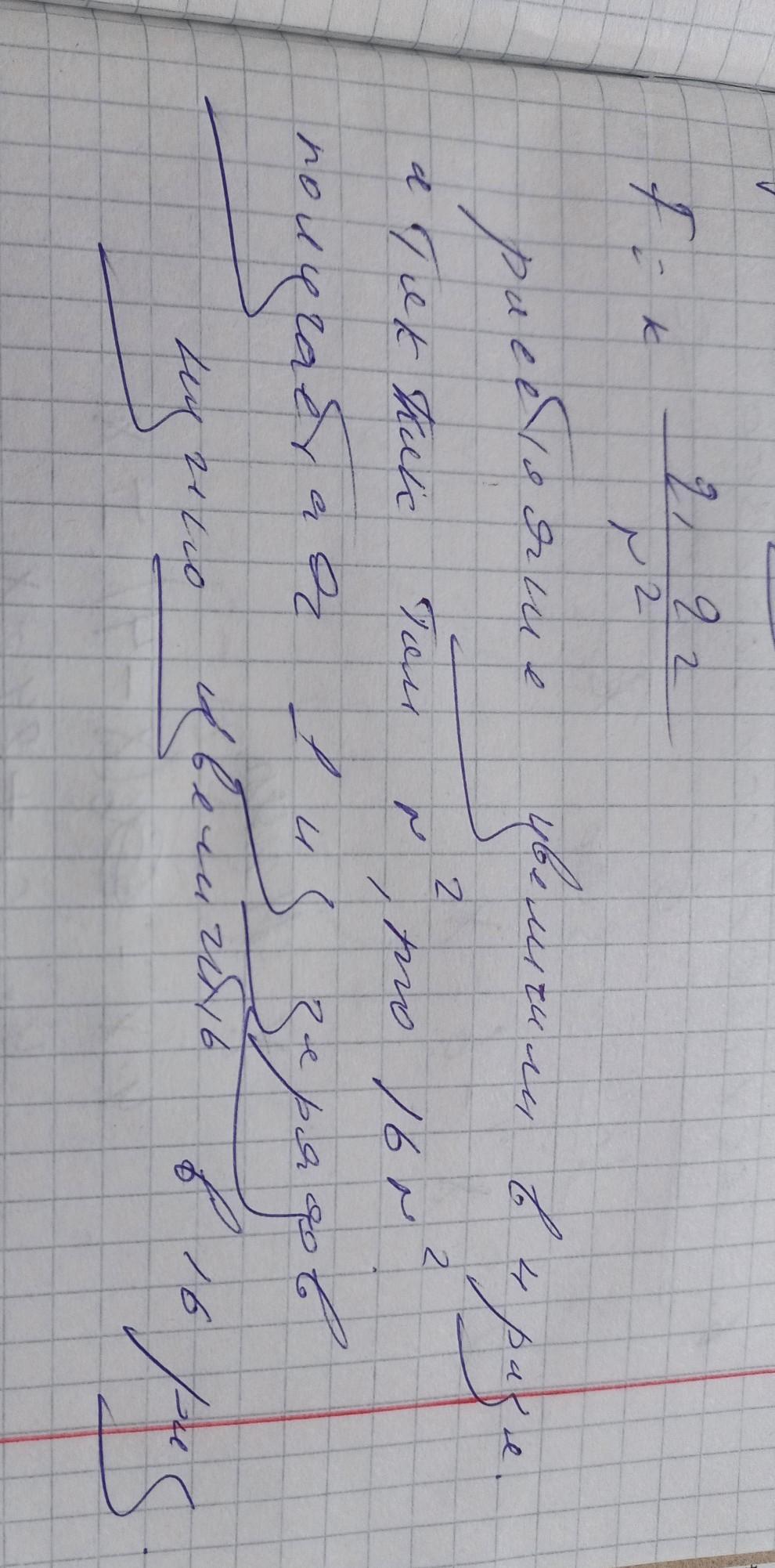 1. Расстояние между 2 точечными зарядами увеличили в 4 раза. Во сколько раз нужно изменить величину одного из зарядов чтобы сила взаимодействия осталось прежней.