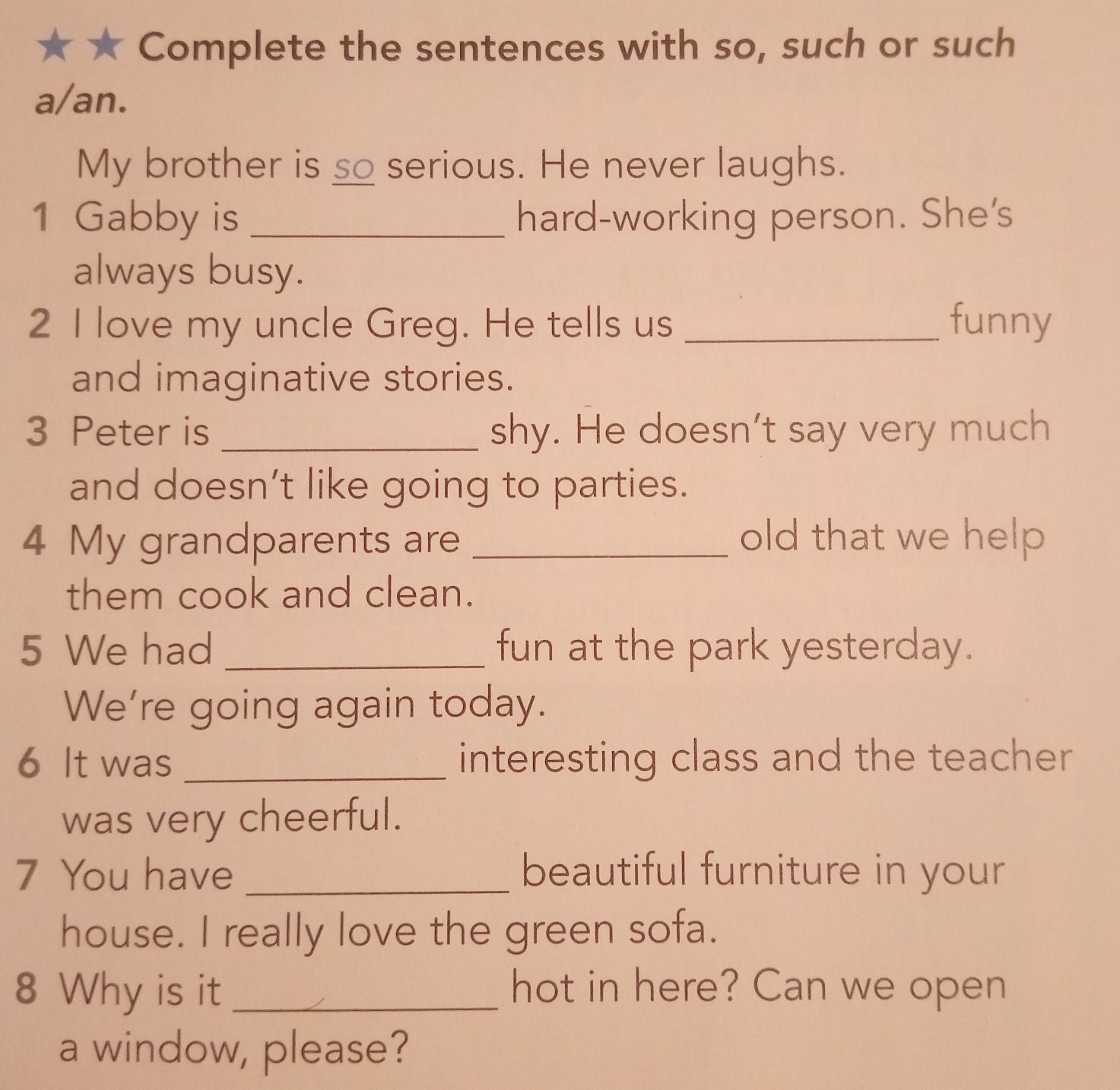 3 Peter is so shy. He doesn't say very much and doesn't like going to parties.