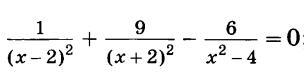 Теперь, если в решении вылезет одно из этих двух значений, мы будем знать, что на самом деле это не корень уравнения. Теперь вернёмся к самому уравнению. Разложим разность квадратов в знаменателе третьего слагаемого.
