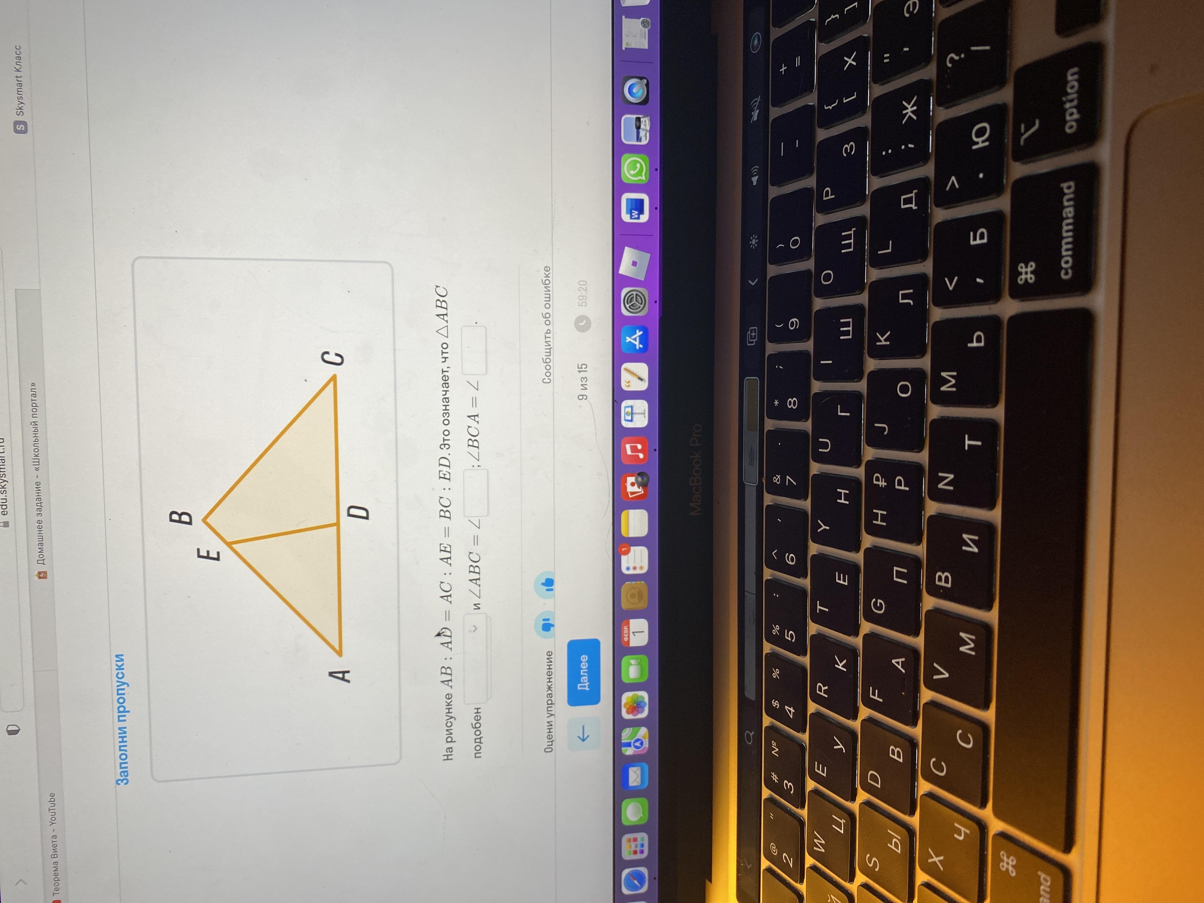 Это означает, что ΔАВС подобен ΔADE и ∠АВС = ∠ADE; ∠ВСА = ∠AED