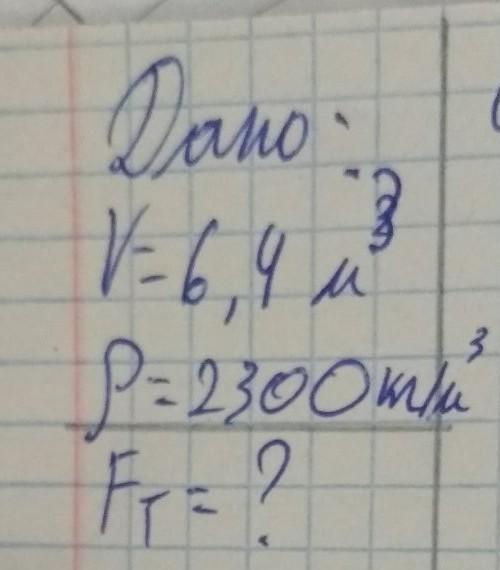 Fт=mg=ρVg=2300*6,4*10=147200Н=147,2кН