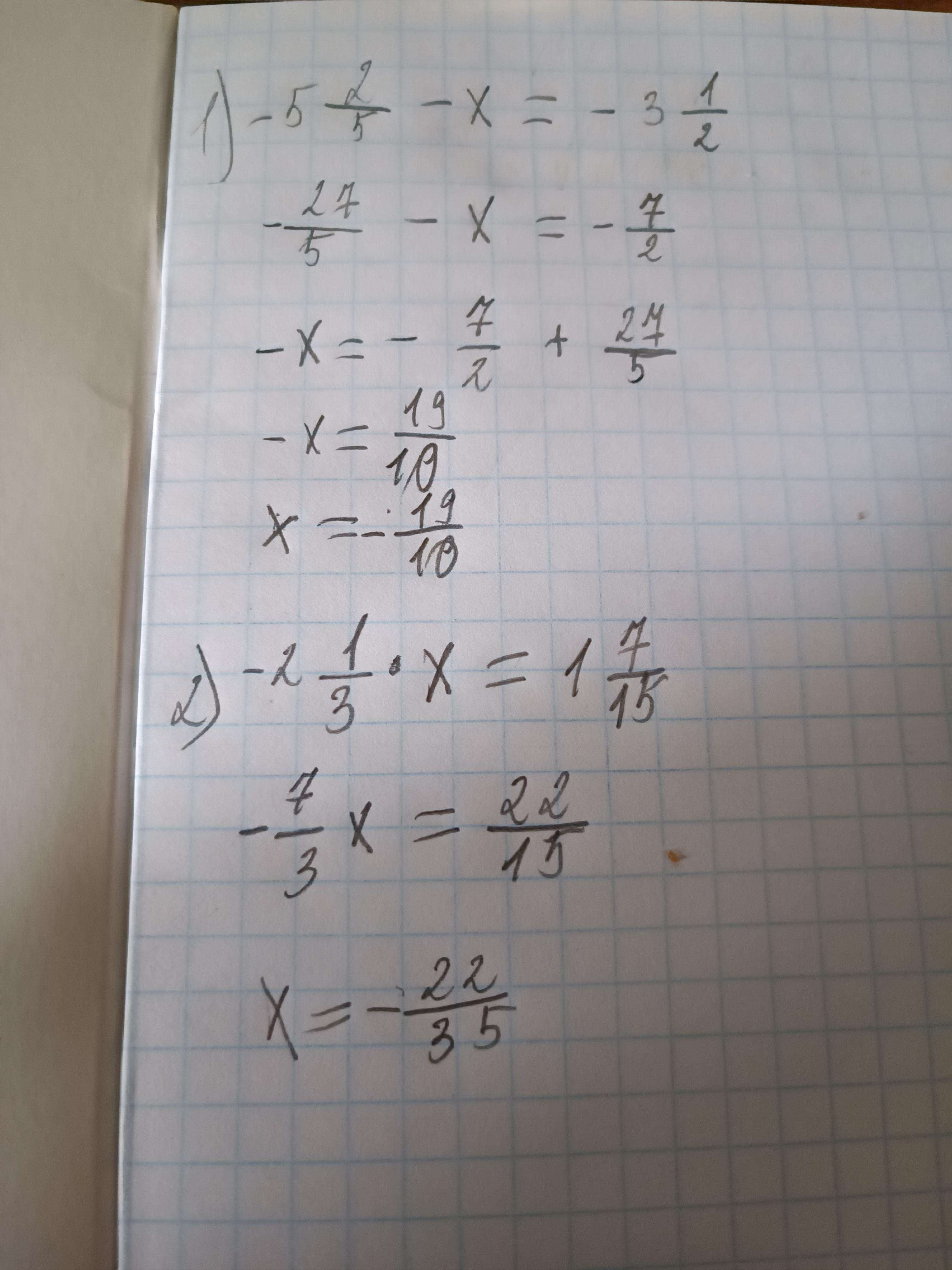 Ответ: в 1 х=1,9 , во 2 = -1 7/15