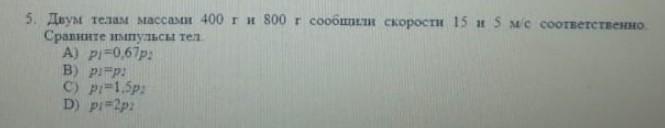 Двум телам массами 400 г и 800 г сообщили скорости 15 и 5 м/с соответственно. Сравните импульсы тел