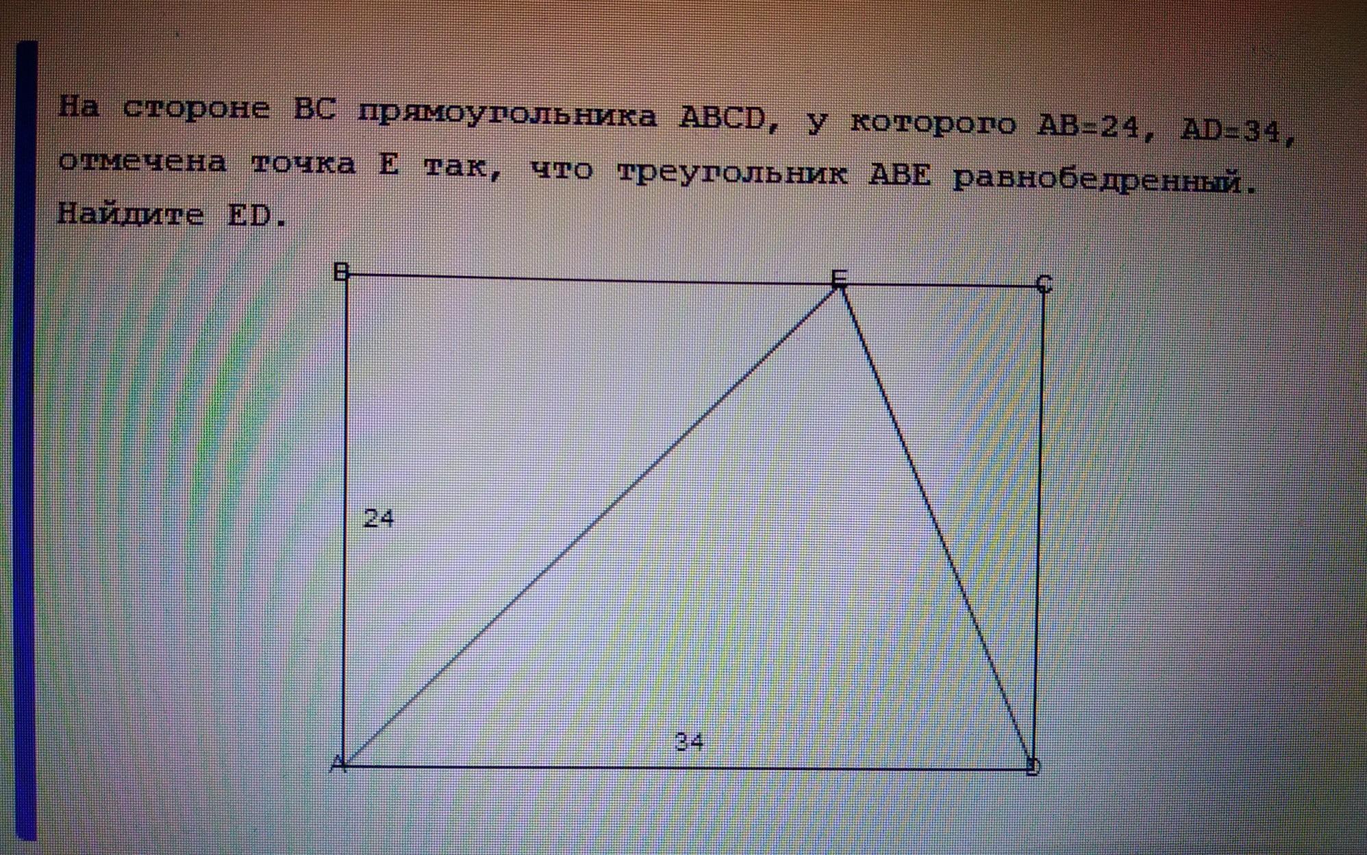 АВ = ВЕ = 24 ( так как треугольник равнобедренный)
