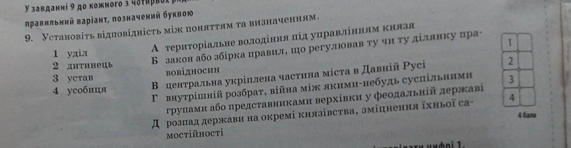 - 4 усобиця - Г) внутрішній розбрат, війна між якими-небудь суспільними групами або представниками верхівки у феодальній державі.