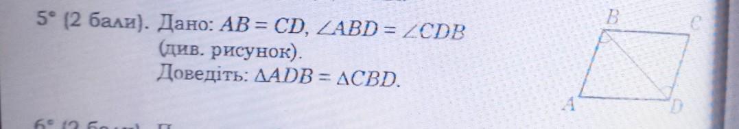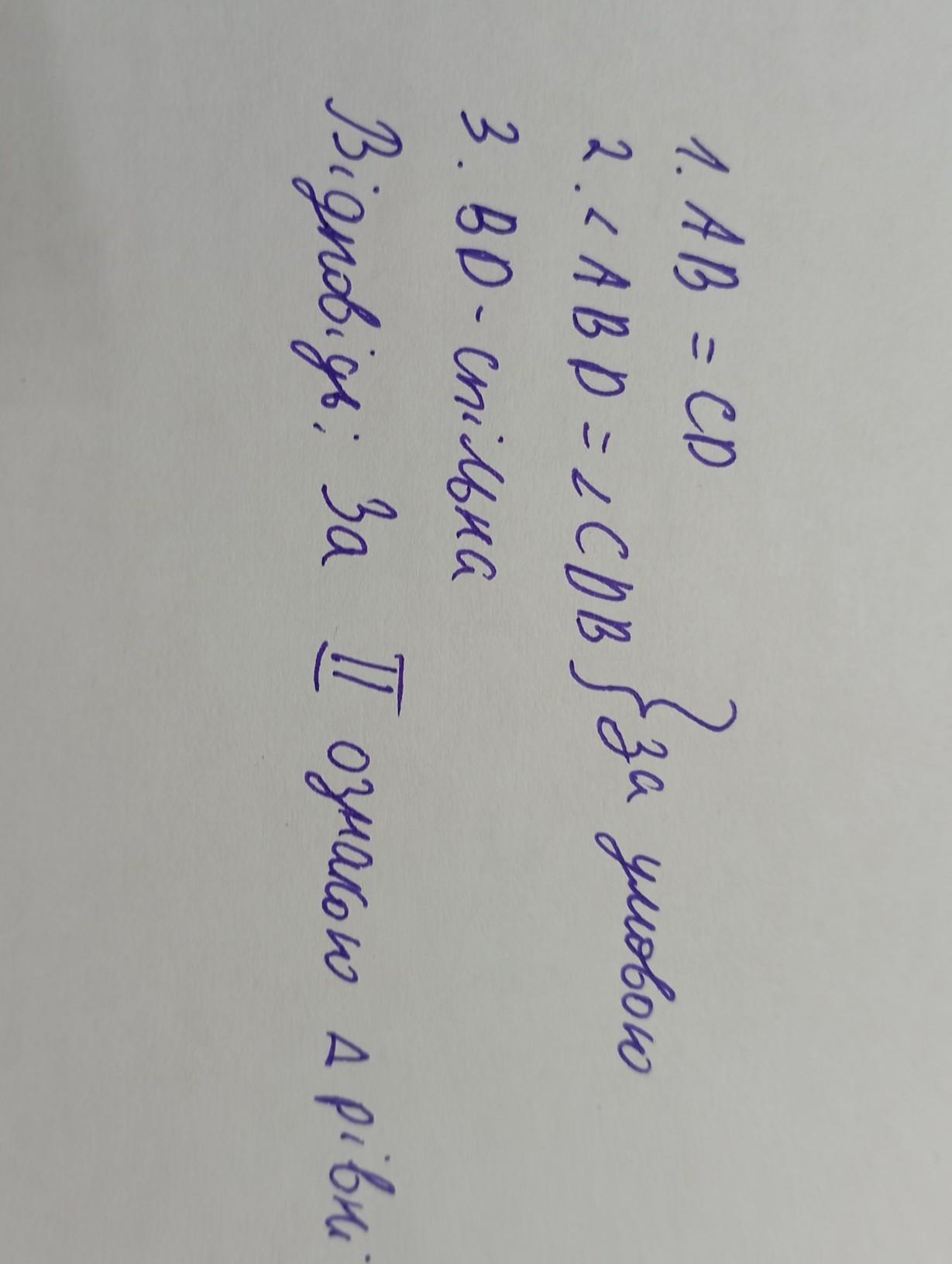 ΔАDВ=ΔCBD равны по 1 признаку равенства треугольников, действительно.