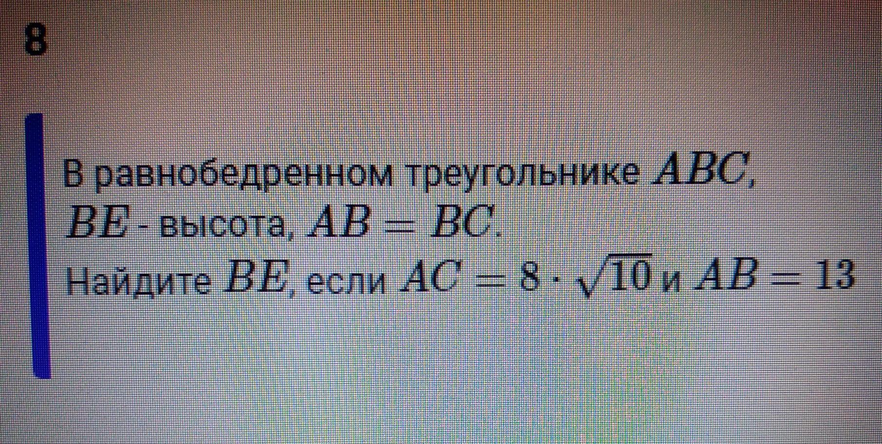 Искомая величина BE, является вторым катетом в прямоугольном треугольнике ABE, гипотенуза в этом треугольке - AB