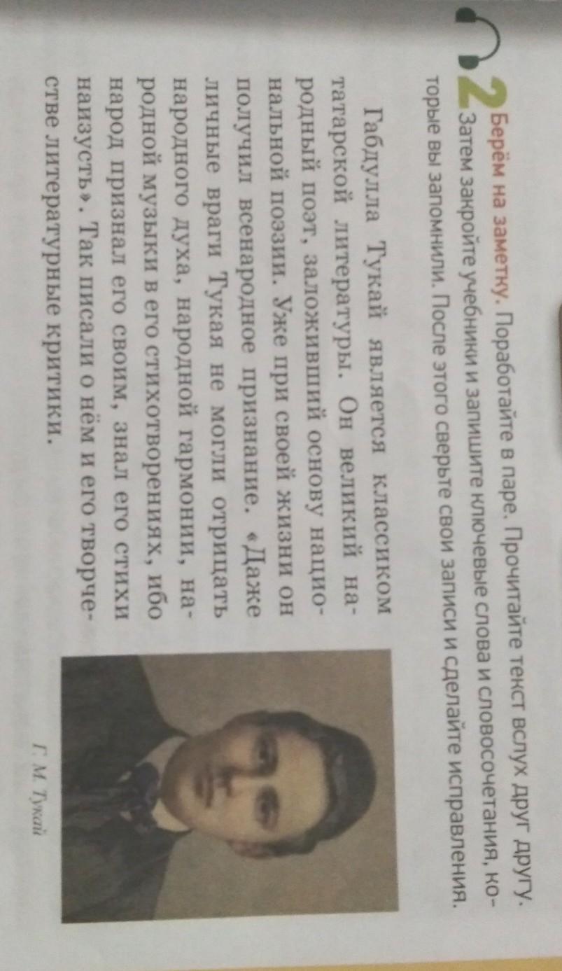2 Берём на заметку .Паработайте в паре .Прочитайте текст вслух друг другу. затем закройте учебники и запешети ключевые слова и словосочтение, которые вы запомнили .После этого сверьте свои записи и сделайте исправление .