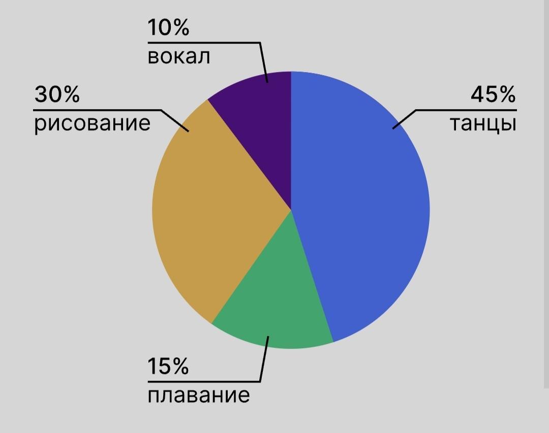 На сборах присутствовало 80 учеников. Каждый из них должен был выбрать дополнительный кружок. Пользуясь диаграммой, ответь на вопросы по сборам.