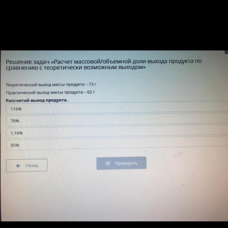 Решение задач «Расчет массовой/объемной доли Выхода продукта по