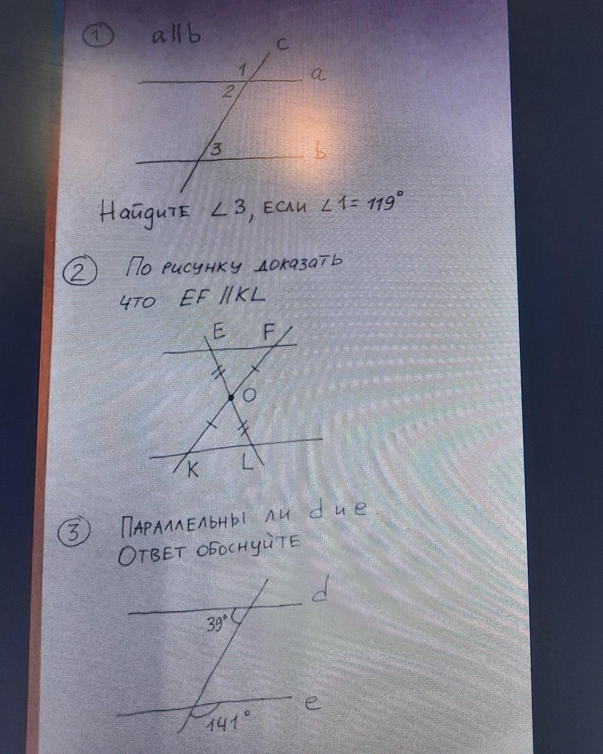 1)угол 3=углу2( внутренние накрест лежащие), угол 2=180-119=61(смежные)ответ: угол3 равен 61°