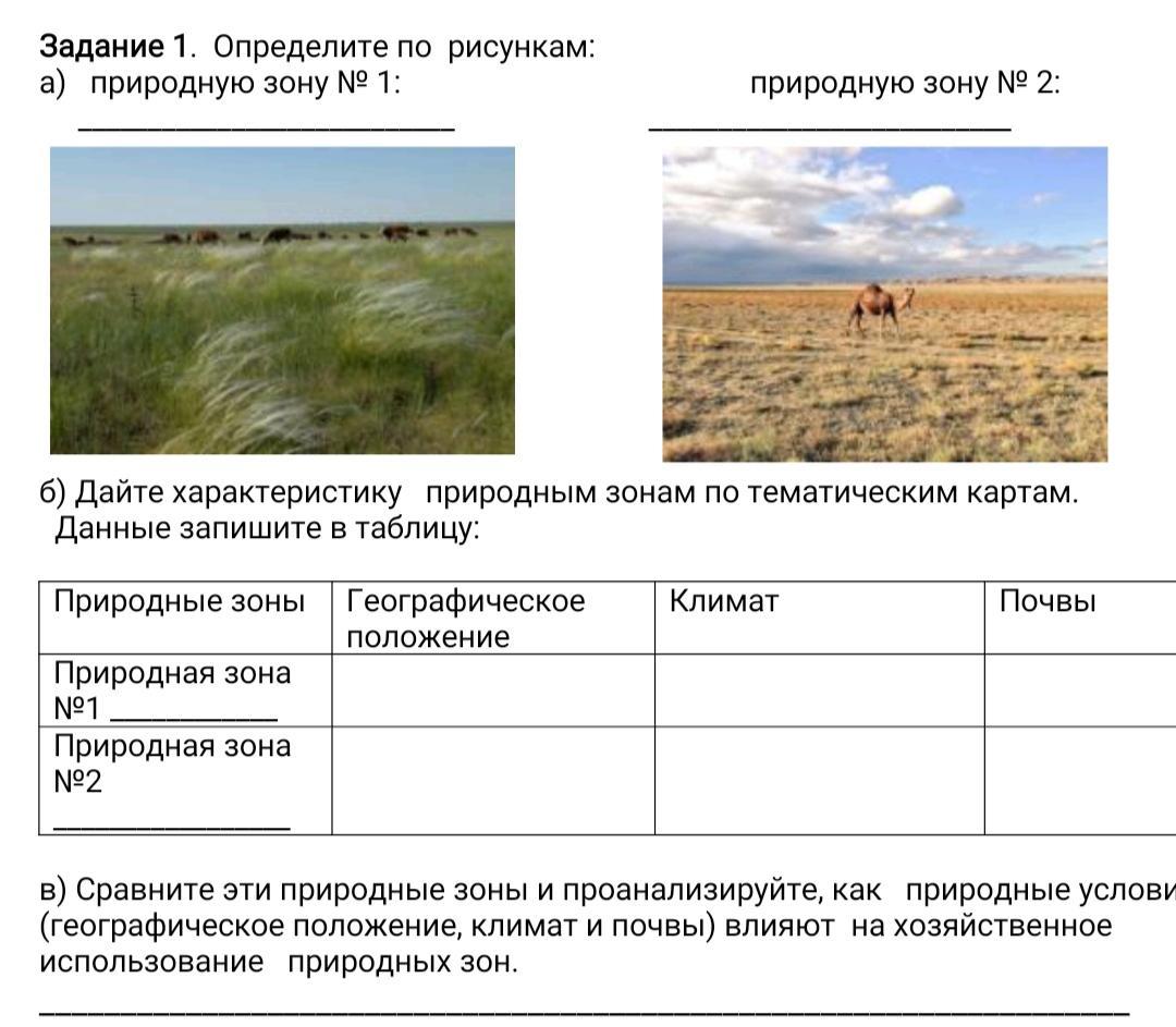 б)Природная зона 1 : Географическое положение :находятся в России на юге страны, в частности, у Чёрного моря и Кавказа, а также в долине Оби и в Забайкалье.