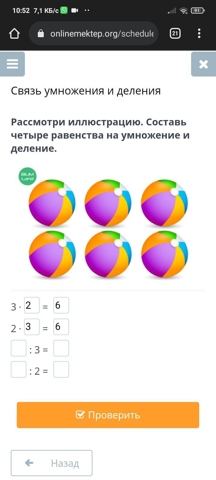 Связь умножения и деления Рассмотри иллюстрацию. Составь четыре равенства на умножение и деление.