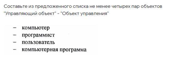 Составьте из предложенного списка не менее четырех пар объектов "Управляющий объект" - "Объект управления"