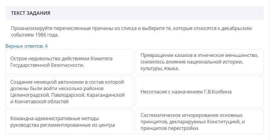 Проанализируйте перечисленные причины из списка и выберите те, которые относятся к декабрьским событиям