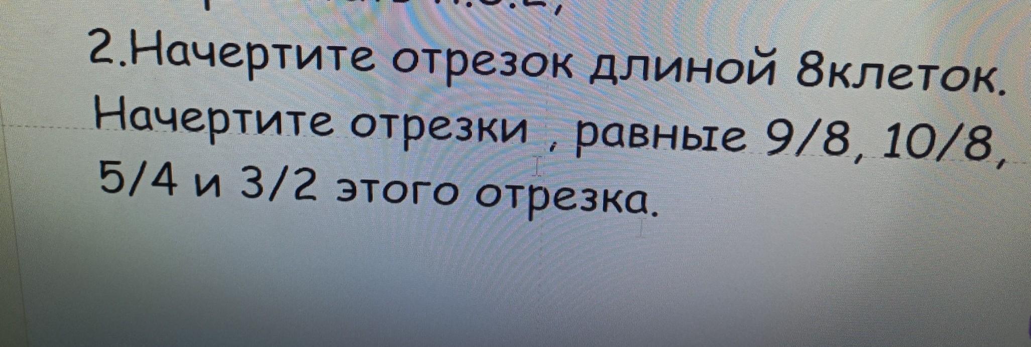 2.Начертите отрезок длиной 8клеток. Начертите отрезки , равные 9/ 8, 10/8, 5/4 и 3/2 этого отрезка.