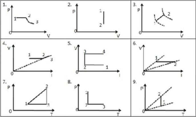 Определите по ГРАФИКАМ, как изменяется ДАВЛЕНИЕ, ТЕМПЕРАТУРА, ОБЪЁМ ГАЗА.