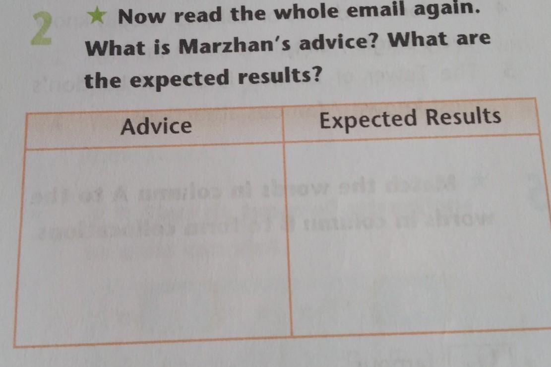2 * Now read the whole email again. What is Marzhan's advice? What are the expected results?