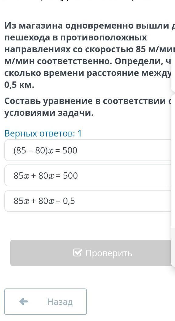 будет 500 м. Тогда 85х м -путь 1-го пешехода, а 80х м - путь 2-го. Составим уравнение