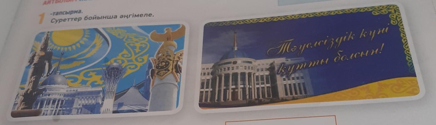 Бул суретте Елымыз туралы 16 Желтоксан тәуелсіздік күні мейрам екены көрсетіліп тур.Біз тәуелсіздігімізді оңайлықпен алмадық.Еліміздін осы күнге жетуі ата ағаларымыздын арқасы.Еліміз қазыр дамыған және көркейген.Осы үшін ата ағаларымызға көп алғыс айтамыз!