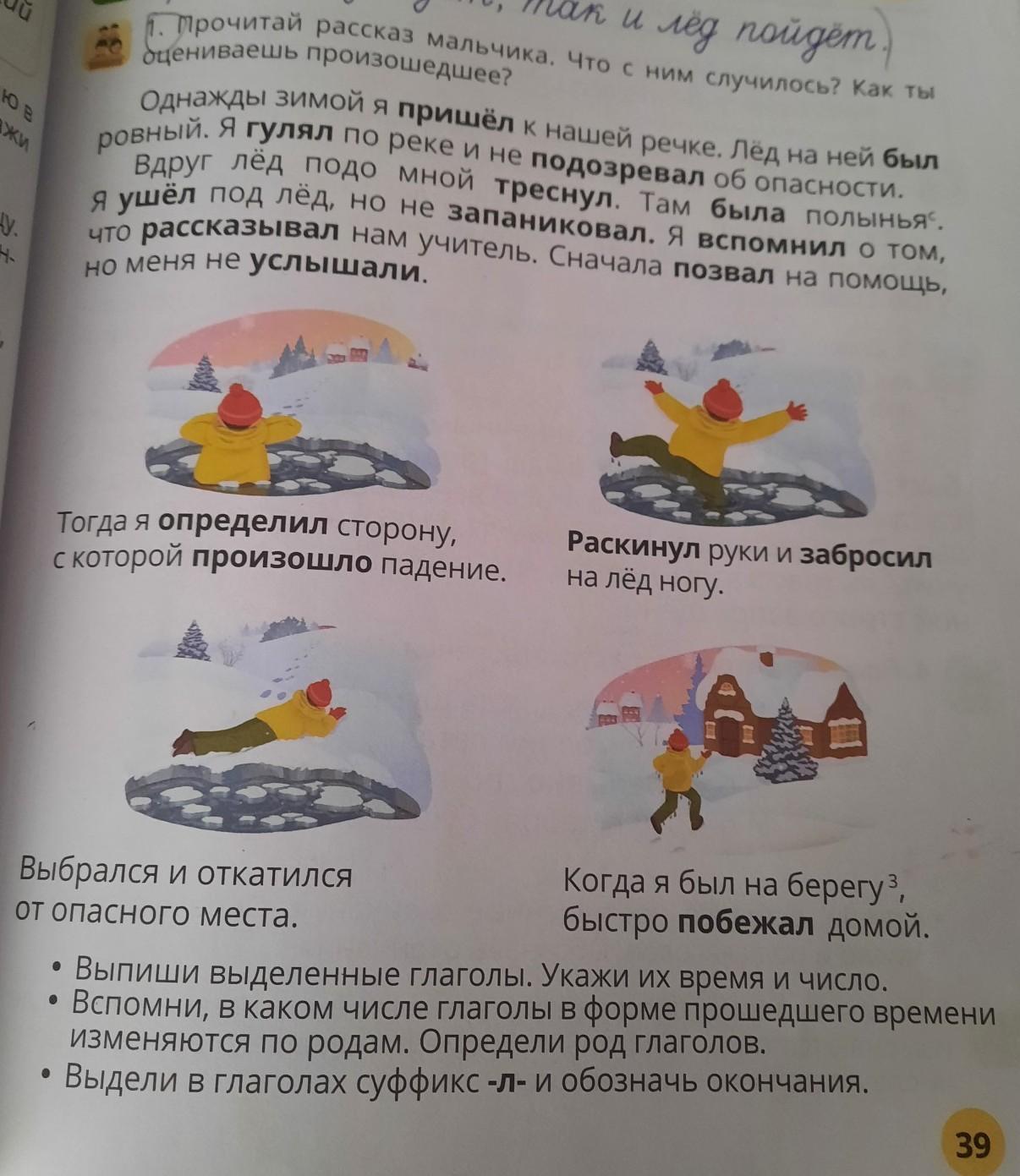 Однажды зимой я пришел к нашей речке. Лед на ней был ровный. Я гулял по реке и не подозревал об опасности Вдруг лед подо мной треснул. Там была полынья. что рассказывал нам учитель. Сначала позвал на помошь, Я ушел под лед, но не запаниковал. Я вспомнил о том, но меня не услышали. Тогда я определил сторону, с которой произошло падение. Раскинул руки и забросил на лёд ногу. Выбрался и откатился Когда я был на берегу, от опасного места, быстро побежал домой.