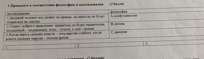 высказывание Т.Великий человск все делает по правде, но никогда не будет опираться на законы 2.Секрет доброго правления: правитель да будет правителем. mmmuB - moRamun -отцом, а сын-сыном 3.Когда парод сильнее власти - государство слабеет, когда власть сильнее народа - сильна армия 2. философия А конфуцианство В легизм С посизм можно быстрей пж пж