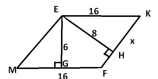 3)Пусть HK=x; ΔEMG~ΔEHK по углу 90° и по равности противоположных углов параллелограмма ∠M=∠K;