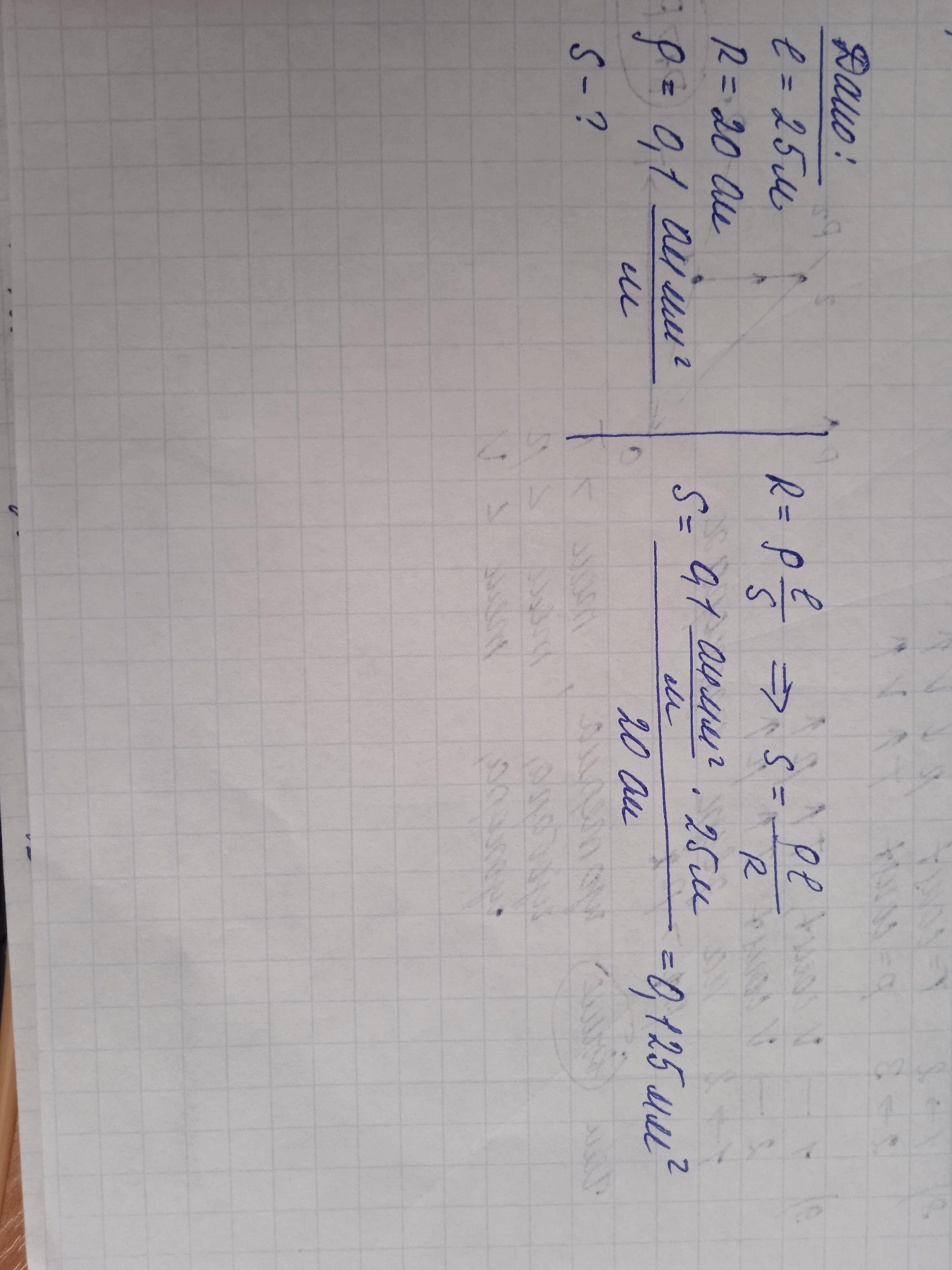 Определите сечение 25 м железной проволоки, если её сопротивление равно 20 Ом. Удельное сопротивление железа 0,1 Ом *мм2/м