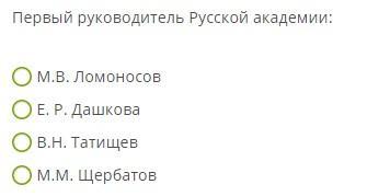 Первый руководитель Русской академии — Е. Р. Дашкова, как председатель.