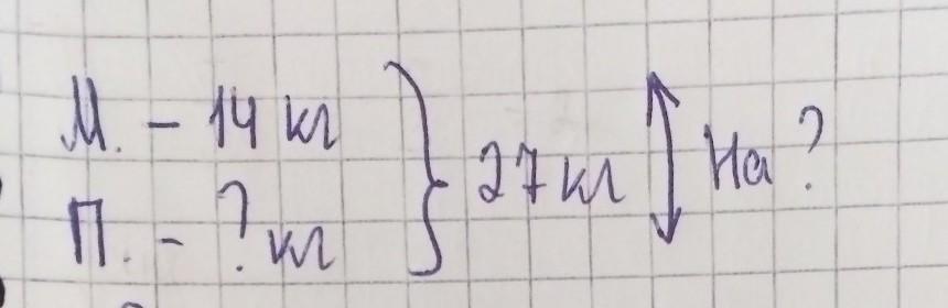2) У шкільній їдальні 27 кг борошна. З них 14 кг бо- рошна в мішку, а решта у пакетах. На скільки менше борошна в пакетах, ніж у мішку? ? овни короткий запис 14 ачi 2.