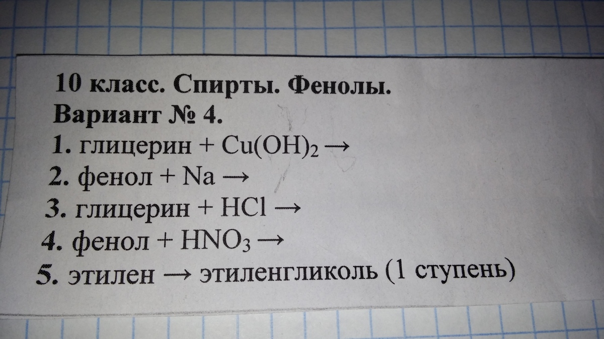 1)CH2OH-CHOH-CH2OH+ Cu(OH)2⇒CH2-O-Cu-O-CH-CH2OH+2H2O