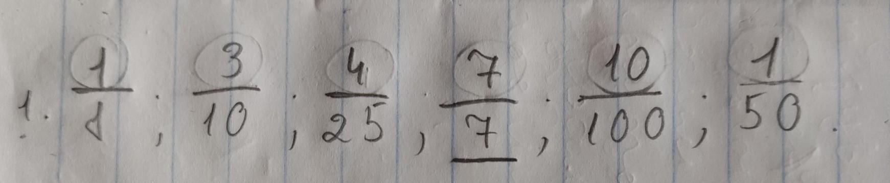 Одна восьмая; три десятых, четыре двадцать пятых, семь седьмых, десять сотых, одна пятидесятая.